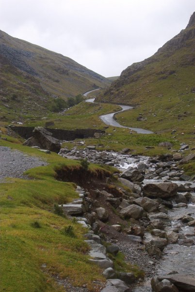 We returned to the hotel, watched Frasier, and slept well. On day five we packed the car up and drove South past Crummock Water and Buttermere to Honister Pass, where we spontaneously stopped the car and got out to take photographs of Gatesgarthdale Beck and the waterfalls that came down from the mountains. It was raining and very, very windy, so soon we were giggling like idiots as we struggled against the elements.